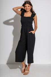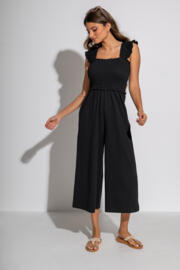 • Shirred bodice jumpsuit with wide-cropped legs