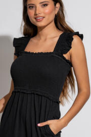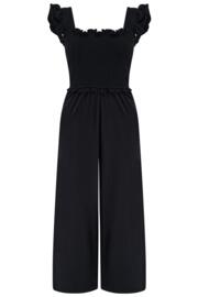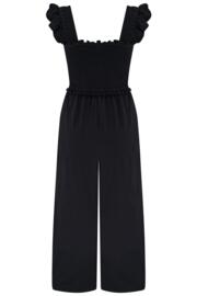 Iris Frill Detail Cotton Slub Crop Leg Jumpsuit - Black