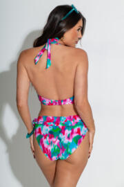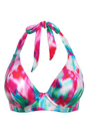 Malibu Underwired Non-Padded Halter Bikini Top - Pink/Green/Blue