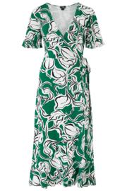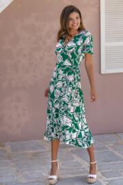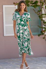 The wrap style design features a fully adjustable waist tie, letting you find your perfect fit, while the frill detailing along the neckline and sleeves adds a playful, feminine touch. The midi-length, tiered skirt creates a breezy silhouette that?s perfect for sunny days.