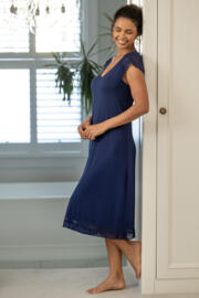 Slip into something lightweight and comfortable with the Bamboo Jersey Lace Secret Support Midi Chemise. Crafted from super soft lightweight, breathable bamboo jersey fabric, for a luxurious and comfortable feel against your skin. Featuring a flattering V-neckline, lace detailed hem and cap sleeves, this midi chemise also includes secret support for added confidence and comfort all night long. The Bamboo Jersey Lace Secret Support Midi Chemise is perfect for a restful night’s sleep.