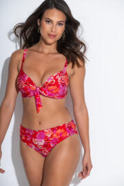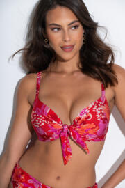 Casablanca Lightly Padded Underwired Front Tie Top - Red Floral