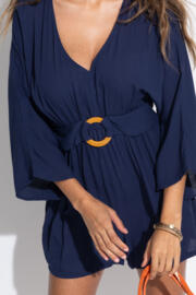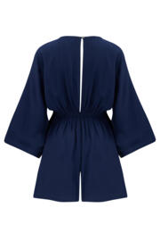 Embrace the carefree spirit of summer with the Crinkle O Ring Beach Playsuit ? a versatile and stylish choice for those sunny days when you need something to throw on easily. With a flattering V-neckline and 3/4 sleeves and a comfortable elasticated waist for a timeless look that will complement your natural figure. Made from lightweight and breathable fabric and featuring relaxed shorts this beach playsuit with plastic rattan effect ring detailing, provides a laid-back and stylish look that is a must-have addition to your packing list. We take the impact that our business has on the planet seriously, that is why the Crinkle O Ring Beach Playsuit is made from sustainable LENZING? ECOVERO? viscose. This is a natural and more sustainable viscose made using sustainable wood sources. It has a substantially smaller environmental footprint.