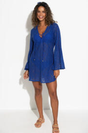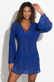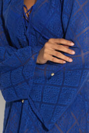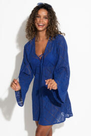 Free Spirit Crochet Lace Long Sleeve Beach Cover Up - Ultramarine