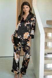 Say hello to your new favourite PJs – the Dusk Printed Satin Revere Collar Pyjama Set is here to bring the glamour to your downtime. Crafted from silky satin and finished with a stunning floral print, this set is your perfect partner for beauty sleep and lazy mornings.
