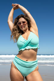 With a cup-sized, underwired fit, it lifts and shapes without padding, while the chic twist front detail adds a flattering touch. A playful frill trim at the underband keeps things fun and flirty, perfect for making waves or lounging poolside. Adjustable straps and a secure clasp at the back mean comfort is guaranteed. Pair with your favourite Free Spirit bottoms for a look that’s fabulously confident and effortlessly stylish.