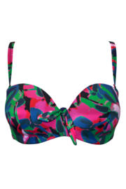 With its removable straps, vibrant print and sweetheart neckline, the Heatwave Strapless Lightly Padded Bikini Top is the perfect bikini for your holidays. Worn strapless it's ideal for tanning or with straps for a little more support, this underwired bikini has light padding to mould and accentuate your shape. Like all our strapless bikinis it gives great uplift and features a clasp to the back and cute bow detail to the centre front. Embrace responsible fashion choices with the Heatwave Strapless Lightly Padded Bikini Top that contains recycled content.