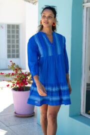 Relax in style with our Linen Blend Beach Kaftan Dress, the ultimate piece for laid-back beach days or warm evenings. This short kaftan dress features a tiered skirt for a flowy, flattering silhouette, and is made from a lightweight linen blend fabric that keeps you cool and comfortable. The three-quarter length arms with elasticated openings and decorative tassel tie detail add a playful, boho-chic vibe, while the Nehru neck collar gives it a sophisticated touch. Perfect for a stroll by the beach or a casual day out, this kaftan dress is the definition of easy, breezy style.
