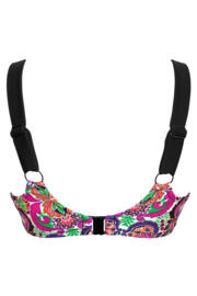 The fully adjustable straps and secure back clasp fastening give a tailored fit that stays put, whether you’re swimming, sunbathing or strolling the beach. Designed as cup-sized swimwear, it provides a precise, flattering fit. Finished in a bold tropical print, this bikini top is a standout addition to your swimwear collection. Pair it with the matching briefs for a polished, beach-ready look that blends comfort, style and individuality.