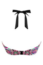 Designed with removable padded cups, it lets you choose your level of shape and support, while the non-wired construction keeps things comfortable and relaxed. The halter neck tie and back clasp fastening offer an adjustable, secure fit that suits your style and your swim.