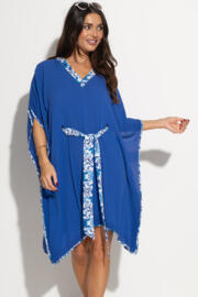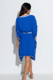 Printed Belt Crinkle Kaftan - Ultramarine