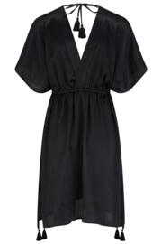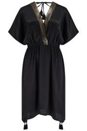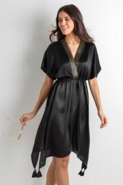 Add a touch of sparkle to your beachwear with the Sequin Placket Kaftan. This short-length kaftan features a plunging V-neckline framed by a shimmering sequin placket, bringing a hint of glamour to sun-filled days. The elasticated waistband creates a flattering shape, while the hanky hem and tassel trims give it beautiful movement and texture. Finished with a functional back necktie for an adjustable fit, it’s the perfect lightweight layer for slipping on over your swimwear – stylish, playful and holiday-ready.