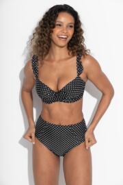 Dive into coastal elegance with the Sicily Lightly Padded Underwired Twist Front Bikini Top, a harmonious blend of style, comfort, and comfort. Featuring built in underwiring, fully adjustable straps and a convenient back clasp, this elegant bikini tops provides you with all the support and customisation you could need from your swimwear. With super soft padded cups and feminine details such as twist front detailing and playful frills on the straps the Sicily bikini top is the perfect piece to add to your swimwear collection. Pair the Sicily Lightly Padded Underwired Twist Front Bikini Top with matching bikini bottoms for a coastal inspired bikini set. Embrace responsible fashion choices with the Sicily Lightly Padded Underwired Twist Front Bikini Top that contains recycled content.