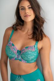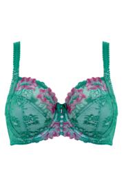 Sofia Lace Embroidered Side Support Bra D-J - Green/Pink