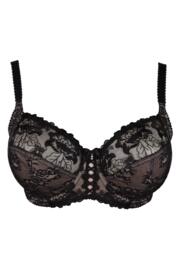 Sofia Lace Embroidered Side Support Bra D-J - Black
