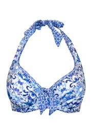 St Lucia Halter Underwired Non-Padded Top - White/Blue
