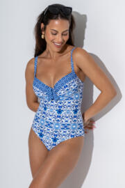 St Lucia Padded Underwired Swimsuit - White/Blue