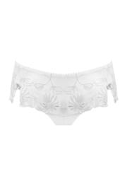 Our pretty Embroidered Shorty features side slits that are decorated with stunning diamante details. These everyday shorts feature delicate floral lace and a smooth comfort elasticated waistband with a key hole back. Designed for a low rise style, they have a scalloped trim for a feminine finish.